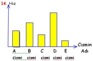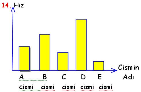 “Eşit kütleli A, B, C, D ve E cisimlerine aynı şiddette kuvvet uygulanarak hızları ölçülmüştür.