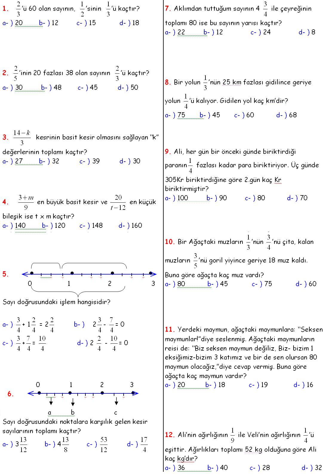 5. Sınıf Matematik Dersi Kesirler Problemleri