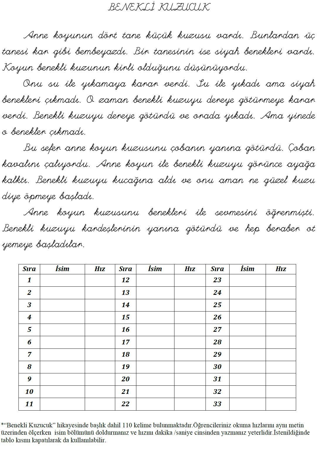 2. Sınıf Türkçe Dersi – Okuma Hızı Metinleri – Benekli Kuzucuk
