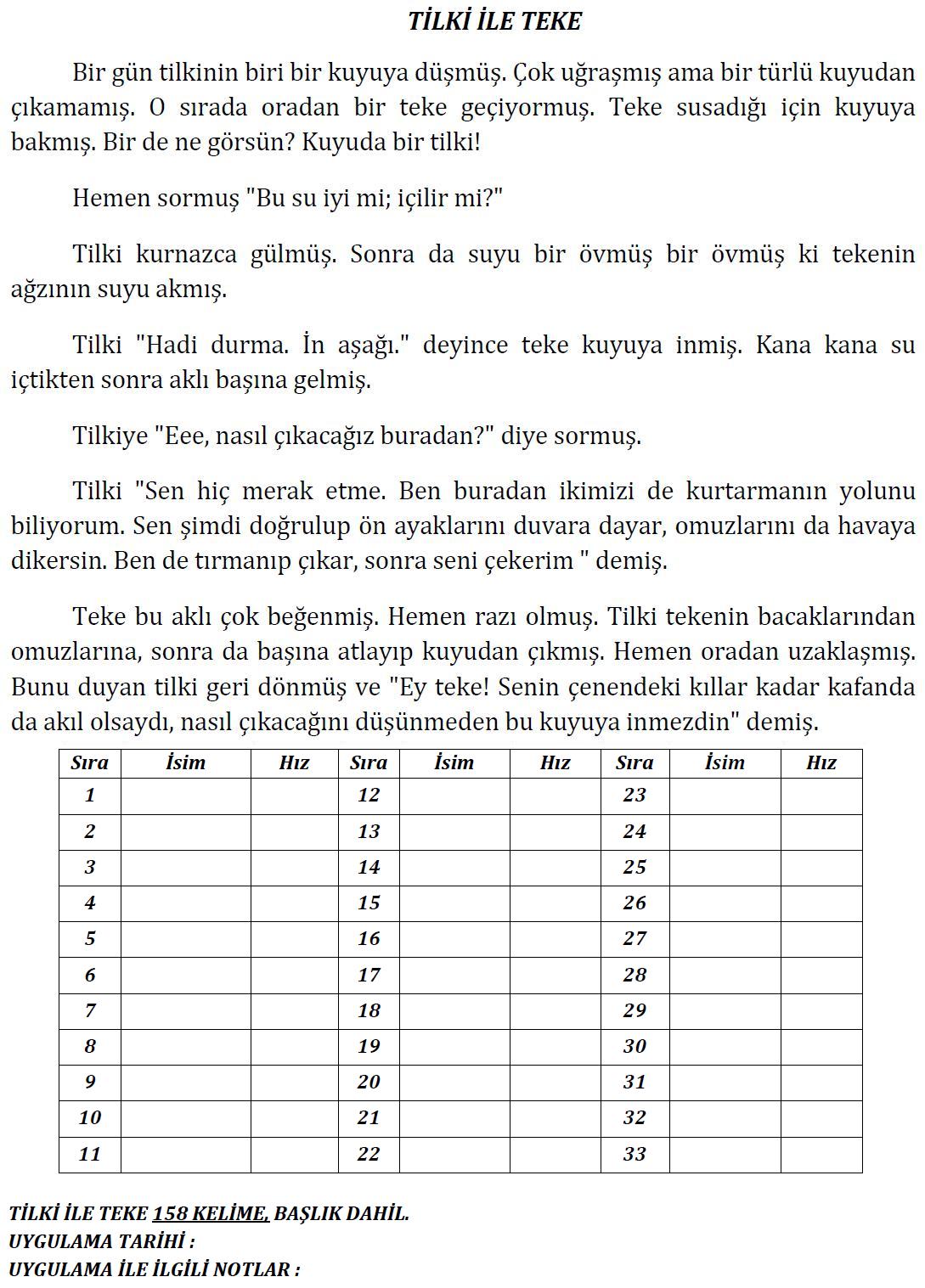 2. Sınıf Türkçe Dersi – Okuma Hızı Metinleri – Tilki ile Teke