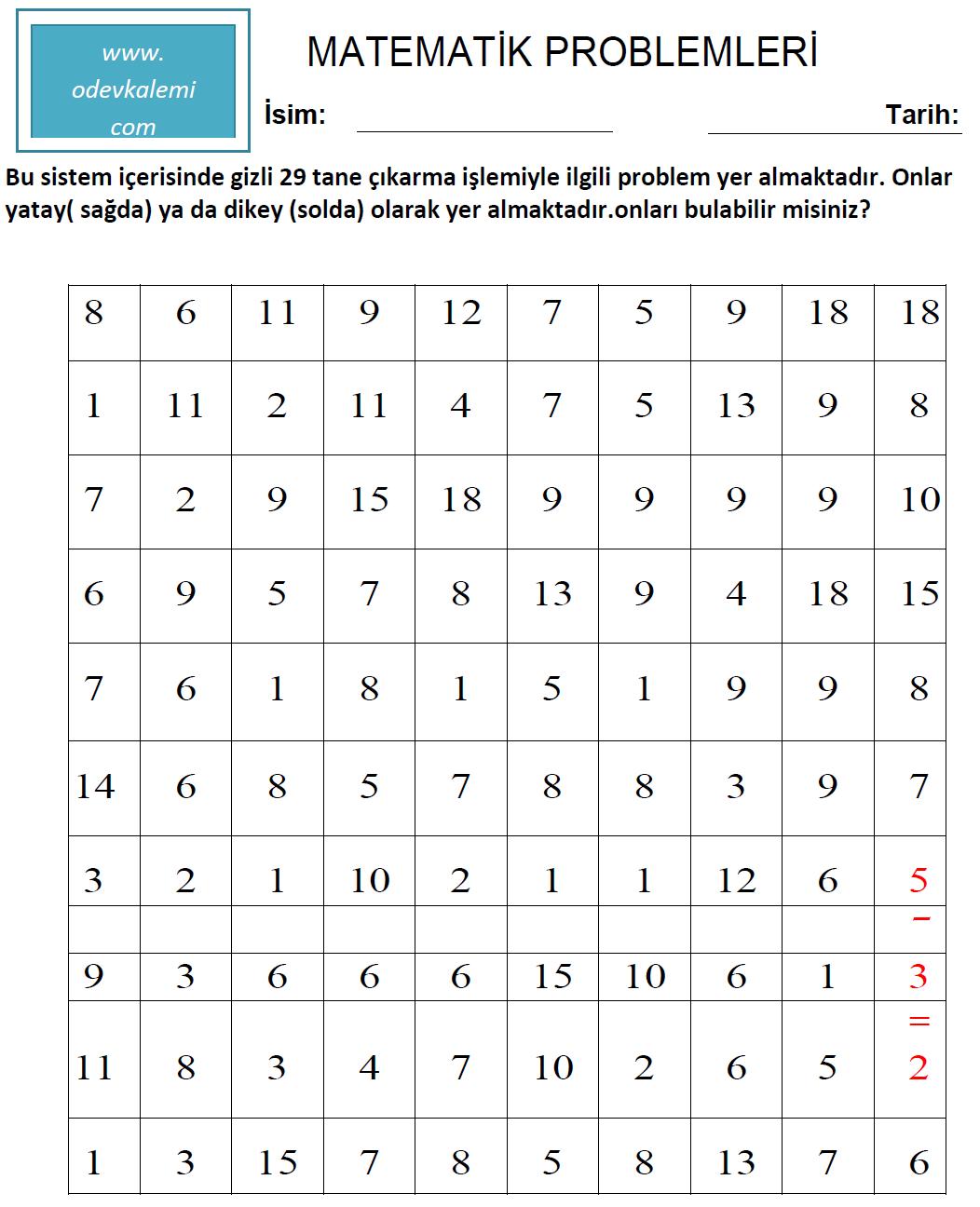 2. Sınıf Matematik Dersi Çıkarma İşlemleri Bulmaca – Matematik 2 Çıkarma İşlemleri Bulmacası