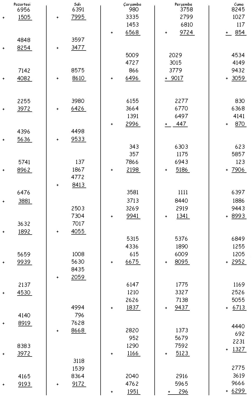 4. Sınıf Matematik Dersi Toplama İşlemleri