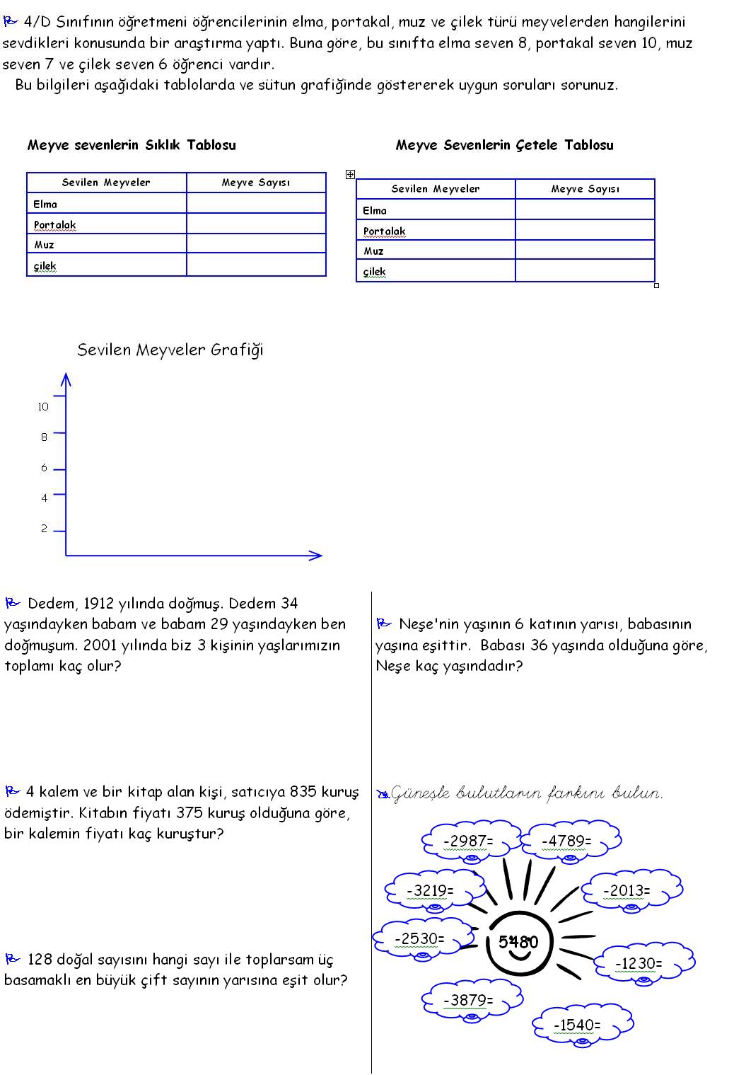 4. Sınıf Matematik Dersi – Grafik ve Çetele Tablosu Oluşturma