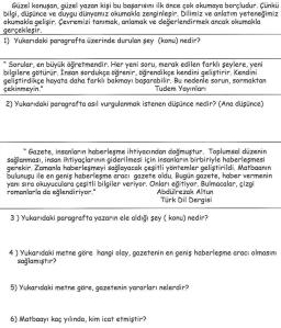 4. Sınıf Türkçe Dersi Konu – Ana Düşünce