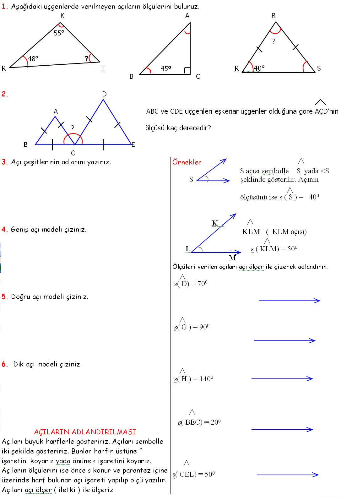 4. Sınıf Matematik Dersi Üçgenlerle İlgili Problemler Açı Soruları Problemleri Geometri ara bul çöz çiz hesapla değerlendirme çalışma etkinlik sayfası kağıdı yaprağı ödev fotokopi günlük çalışma gün gün ödevler konu tekrarı açıların adlandırılması