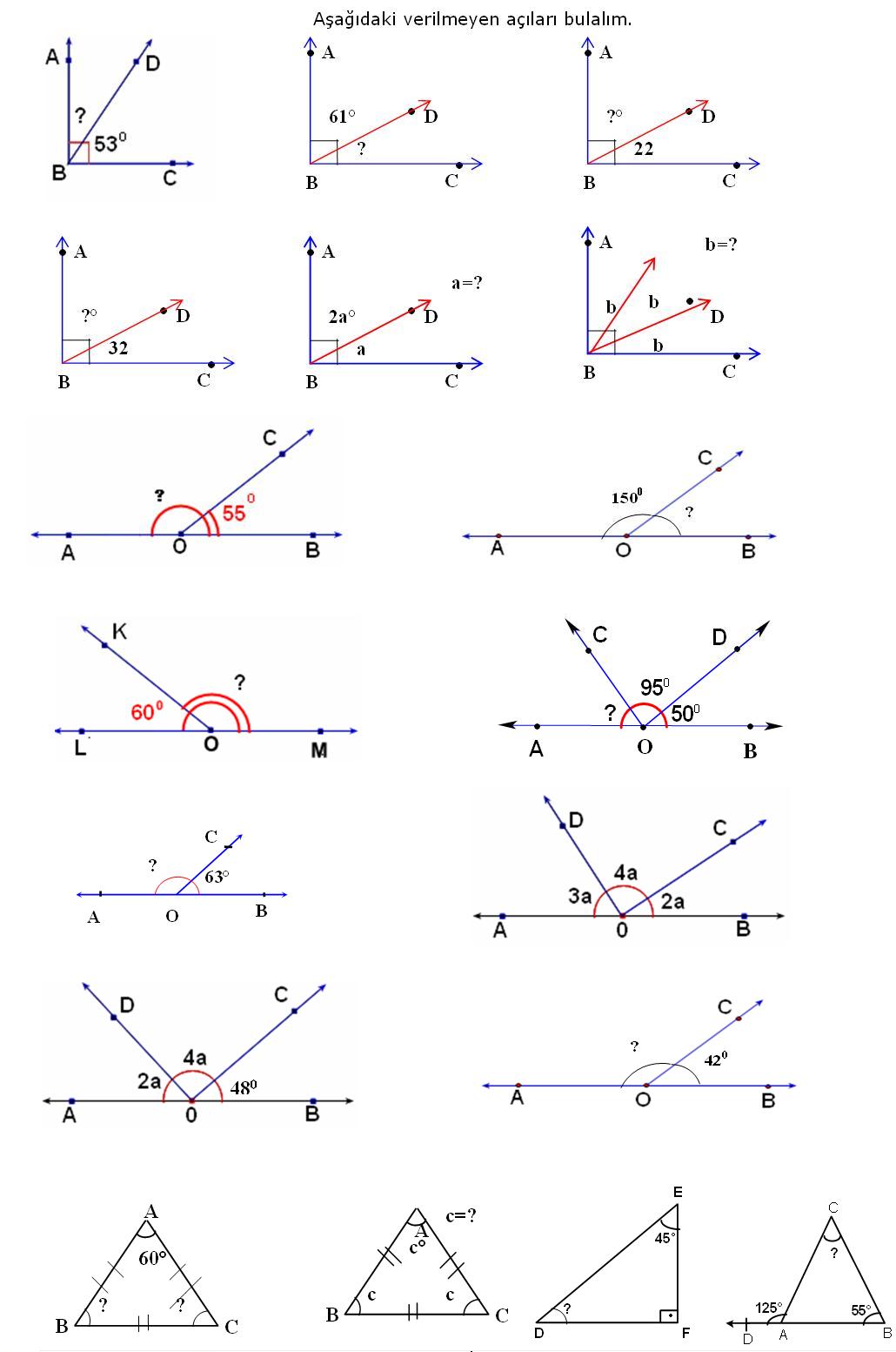 4. Sınıf Matematik Dersi Açıları hesaplama problemleri işlemleri verilmeyen açıyı bulma yaz hesapla Etkinliği Çalışma sayfası kağıdı yaprağı öğrenci çalışma fotokopisi değerlendirme indir bul ara çöz ders konu tekrarı