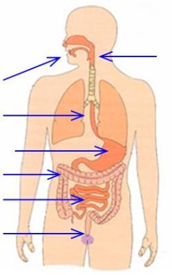 1. Aşağıda sindirim sistemi şeması verilmiştir. Şemada yer alan organların isimlerini okların karşısına yazınız. 14p