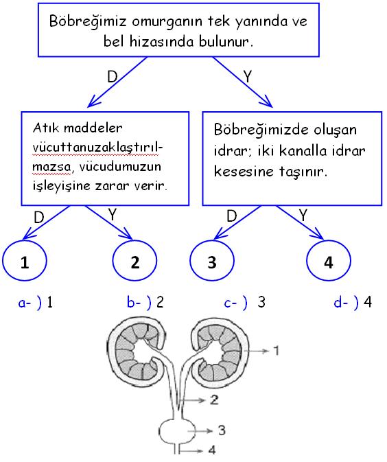 c- )3, böbrek d- )4, idrar kesesidir.