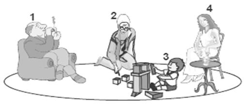 23. Resimde aynı odada bulunan bir aile verilmiştir. Bunlardan hangisi pasif içici değildir?