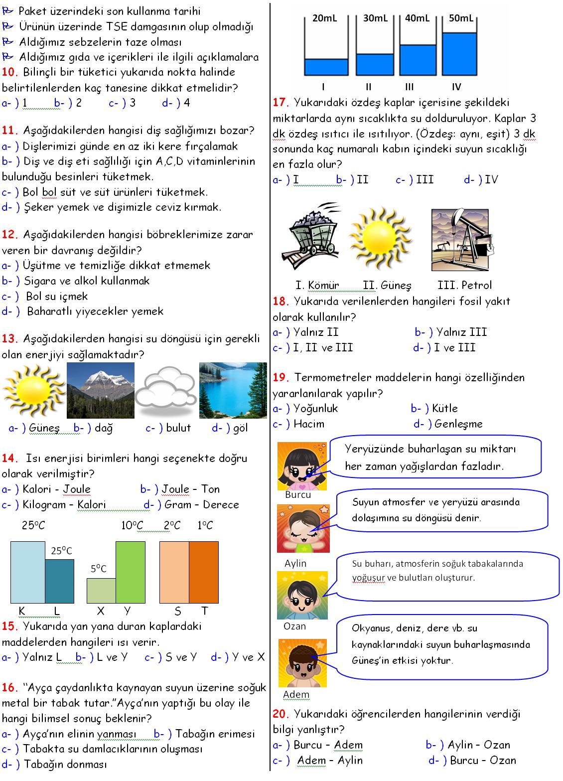 5 – D Sınıfı Fen ve Teknoloji Dersi I. Dönem II. Yazılı Soruları |