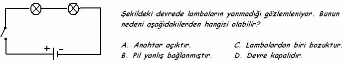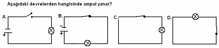 9. Bir devrede iki ampul de yanmaktadır. Devredeki ampullerden biri duyundan çıkarılırsa devrede ne gibi bir değişiklik olur? 4p