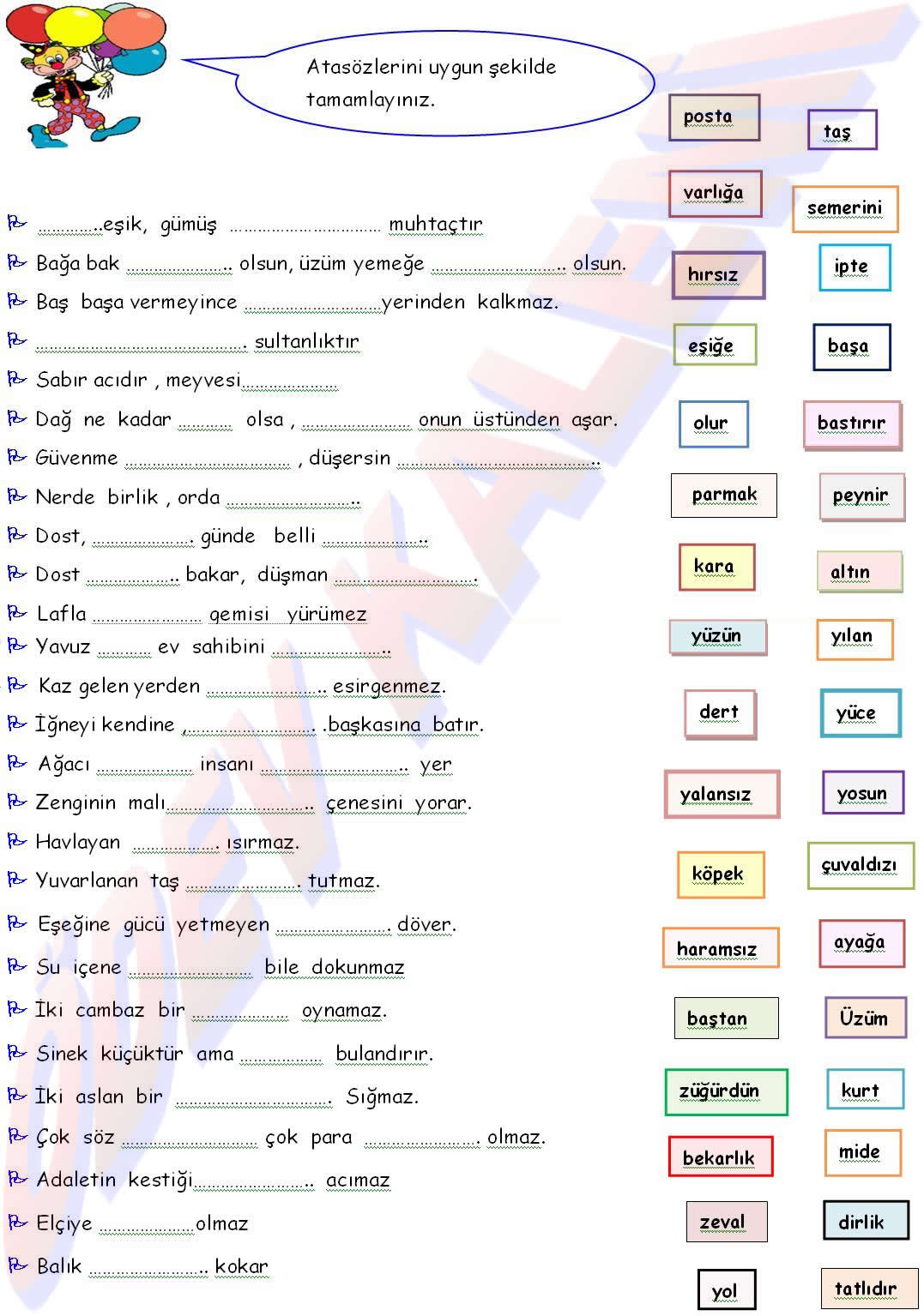 5. Sınıf Türkçe Dersi Atasözleri Değerlendirme Etkinliği Çalışma sayfası kağıdı yaprağı öğrenci çalışma fotokopisi değerlendirme indir bul ara çöz ders konu tekrarı