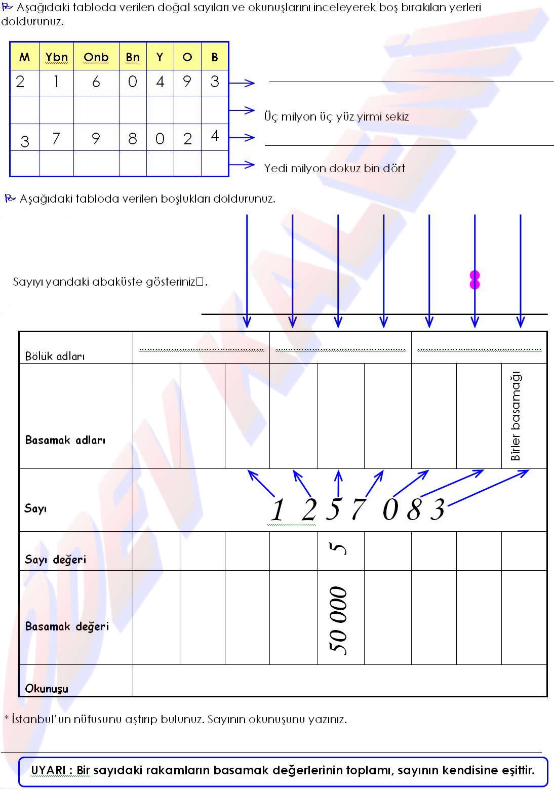 5. sınıf Matematik Dersi Doğal Sayılar 7 Basamaklı doğal Sayıların yazılışı okunuşu bölüm basamak değerleri giriş Değerlendirme Etkinliği Çalışma sayfası kağıdı yaprağı öğrenci çalışma fotokopisi değerlendirme indir bul ara çöz ders konu tekrarı