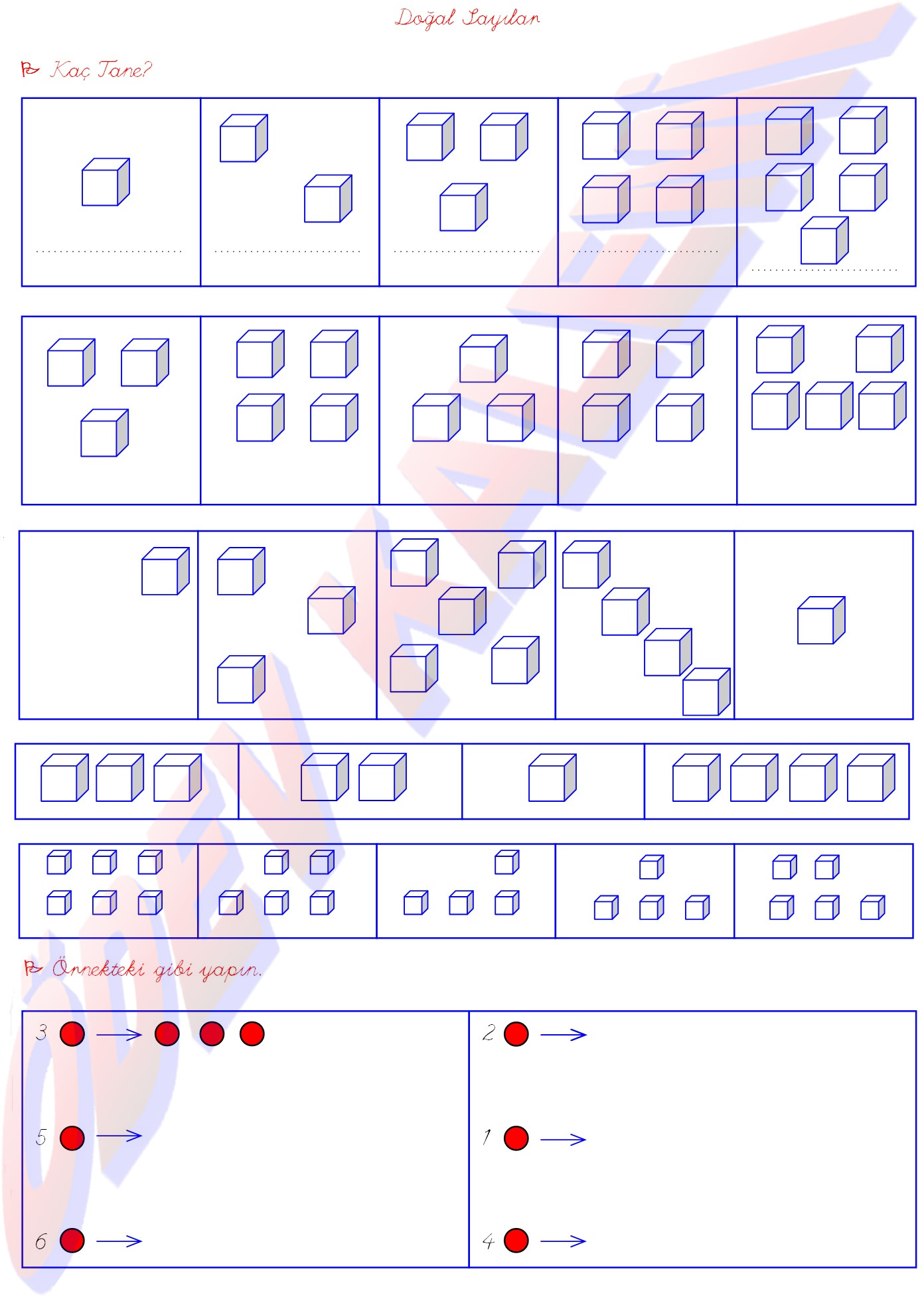 1. Sınıf Matematik Dersi Doğal Sayılar Kaç tene etkinliği çalışma sayfası kağıdı yaprağı fotokopi ders ödev yaz bul ara