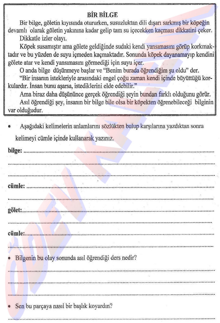 3. Sınıf türkçe Dersi bir bilge etkinliği ders ödev sayfası kağıdı yaprağı fotokopi günlük ödev