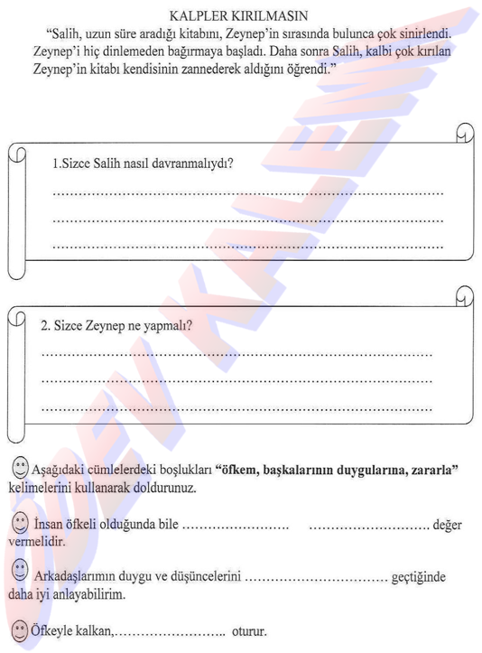 3. Sınıf Türkçe Dersi Metinli etkinlik okuduğunu anlama sayfası kağıdı yaprağı ders ödev fotokopi