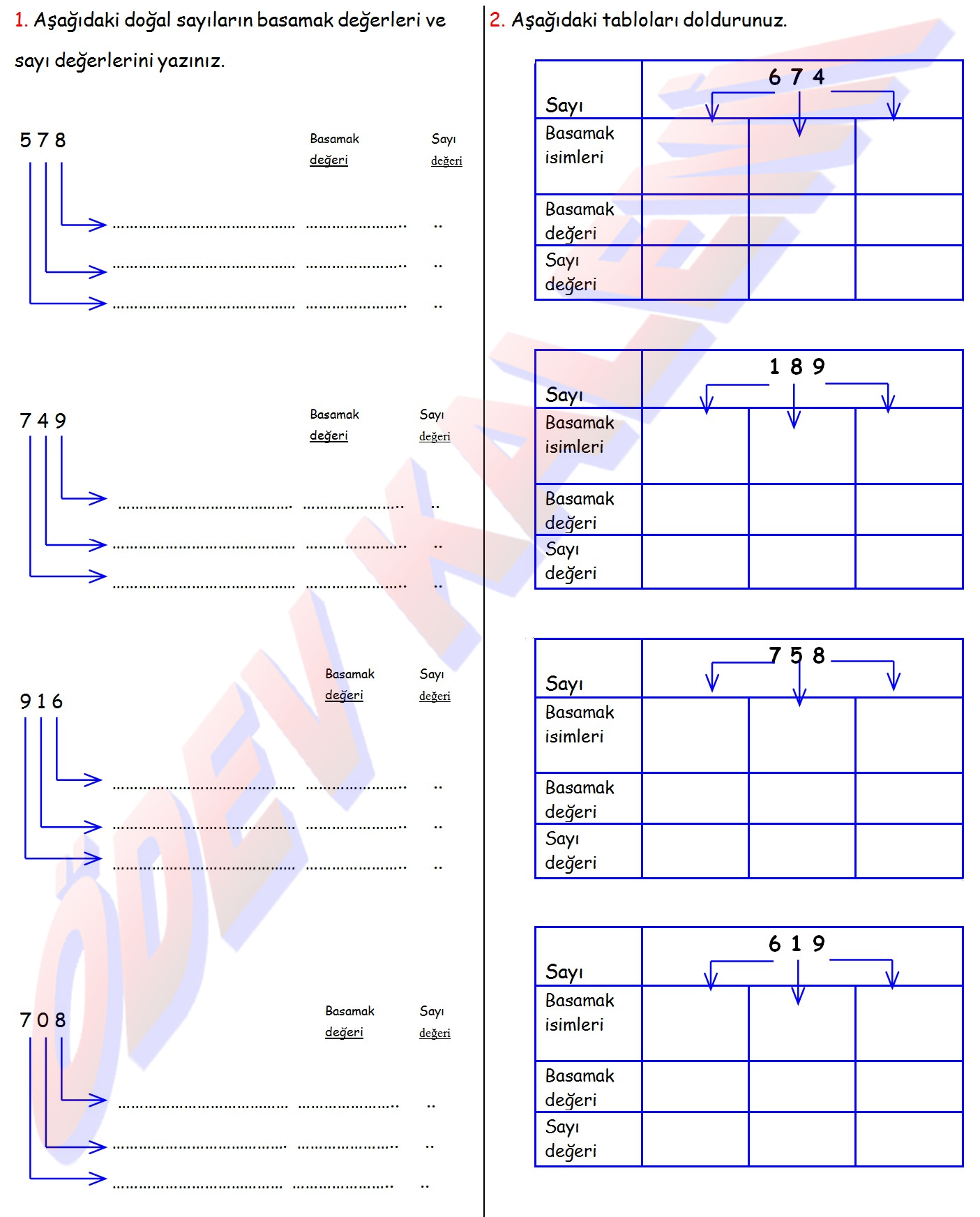 3. Sınıf Matematik Dersi Doğal sayıların çözümlenmesi doğal sayılarda sayı değeri ve basamak değeri yazma bulma örnek ders sorular sayfası kağıdı yaprağı