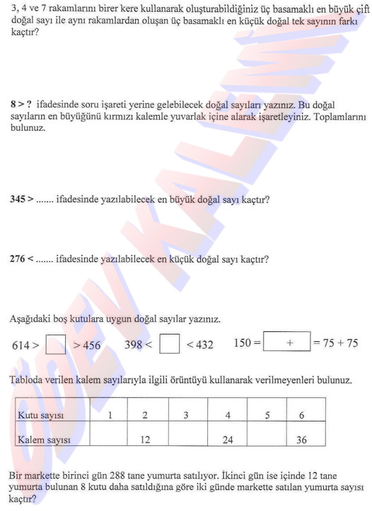 3. sınıf matematik dersi problemler sayfası kağıdı yaprağı fotokopi çöz çiz yaz ders ödev okul ev