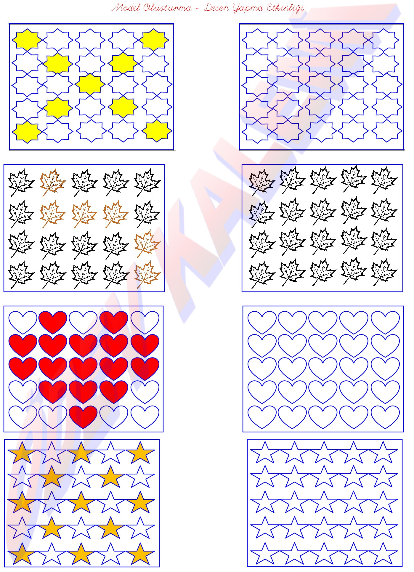 Model oluşturma – Desen yapma Oluşturma Etkinliği 1. sınıf sayfası kağıdı yaprağı ders fotokopi çiz çöz Matematik Dersi