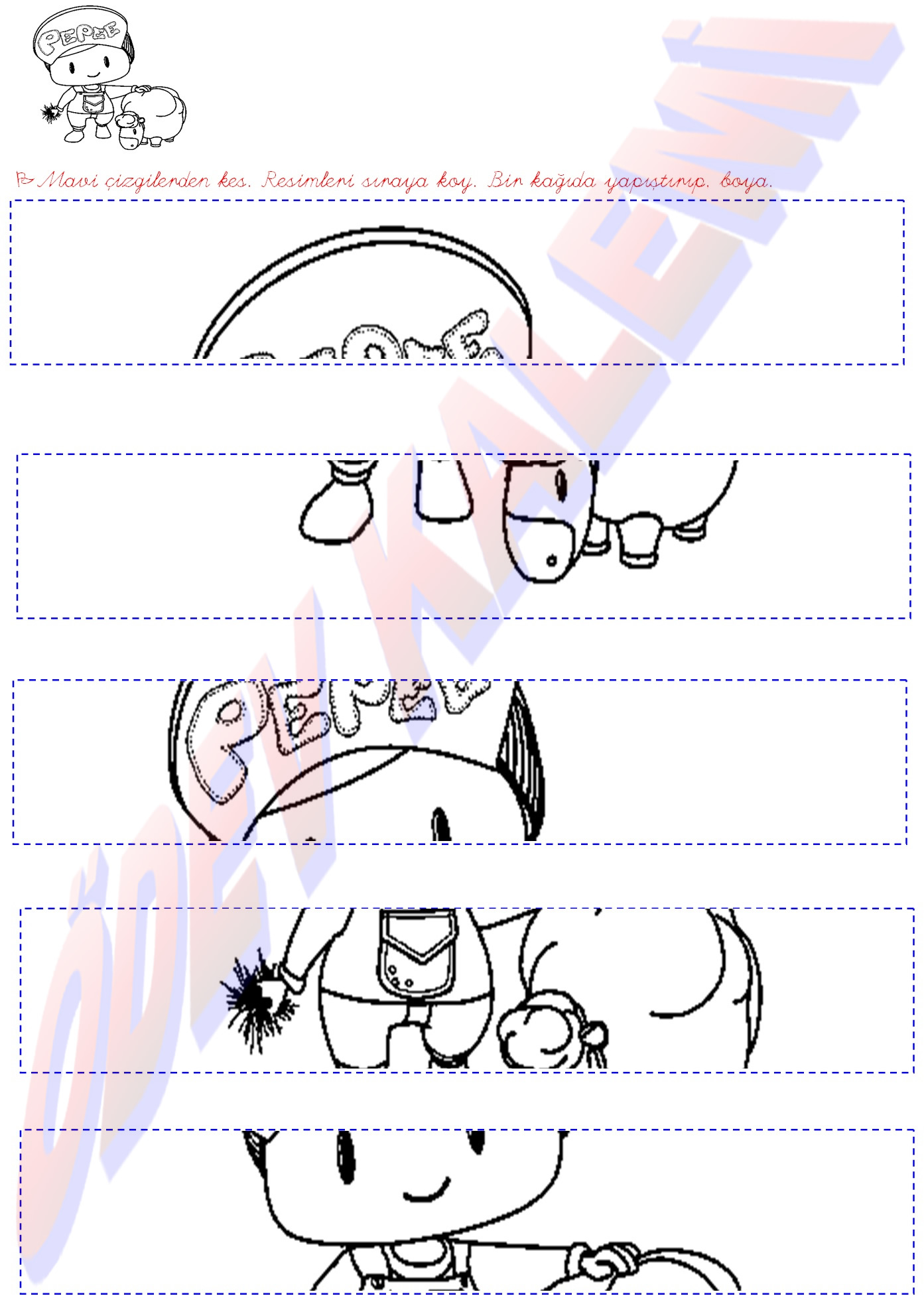 Görsel Sanatlar Dersi 1. Sınıf Pepee kes yapıştır boya etkinliği sayfası kağıdı yaprağı fotokopi ders indir ödev