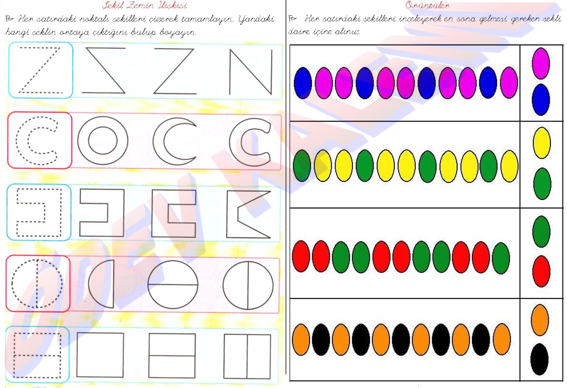 Örüntüler Tamamla 1. sınıf matematik dersi uzamsal ilişkiler şekil zemin ilişkisi sayfası etkinliği kağıdı yaprağı ders ödev fotokopi indir
