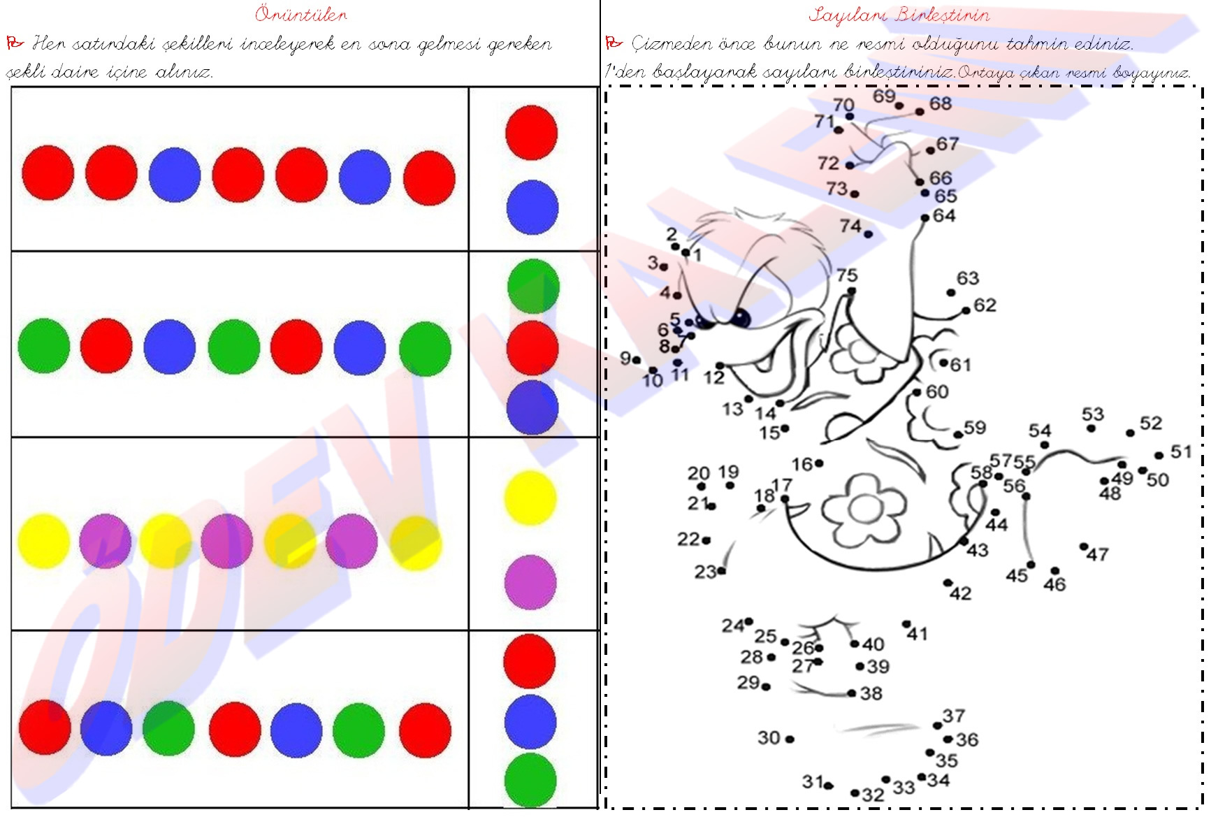 1. Sınıf Örüntüler Sayıları birleştir Matematik Dersi kavrama çöz sayfası kağıdı yaprağı ders ödev fotokopi indir