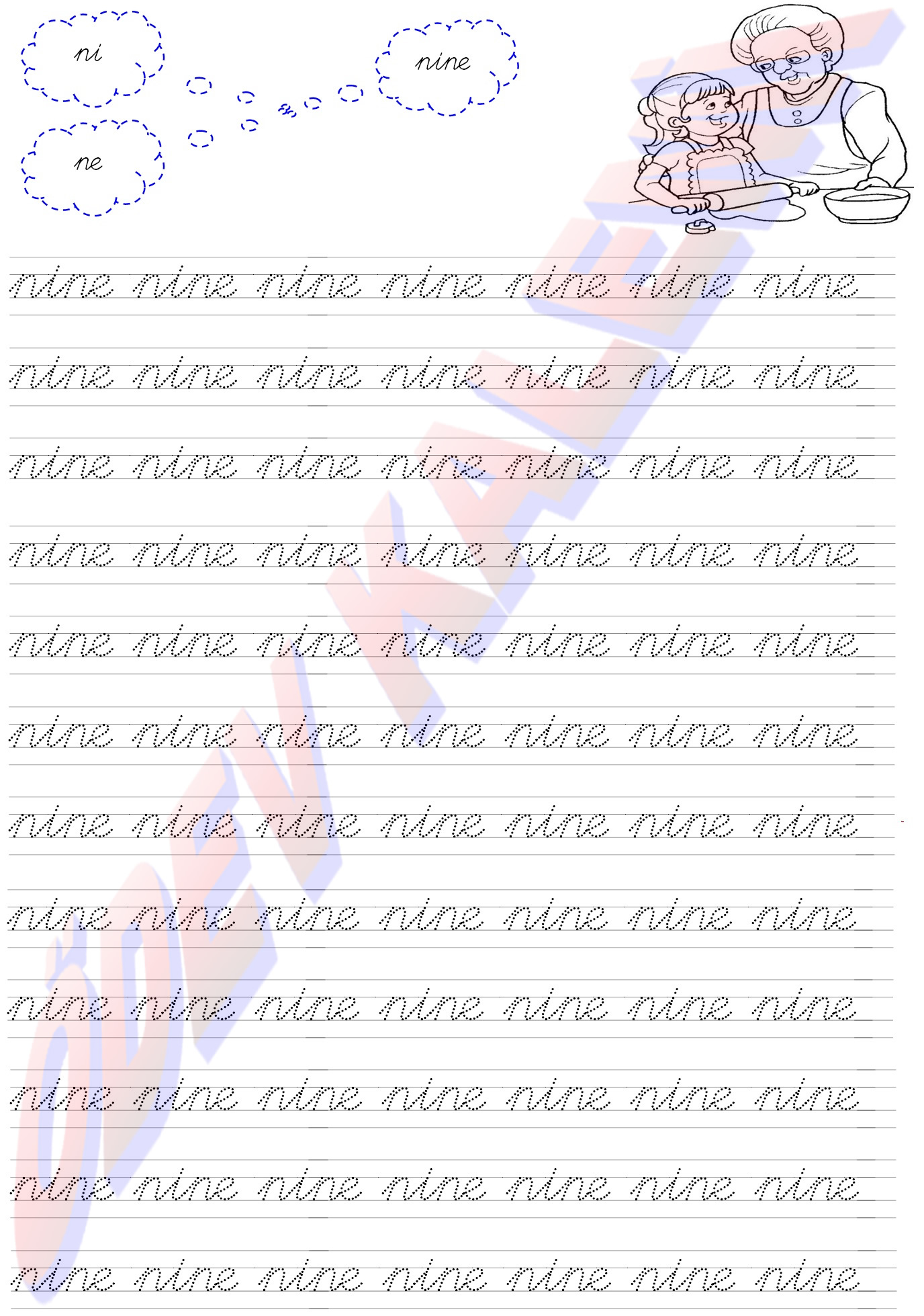 nine kelimesi 2. grup sesler harfler 1. sınıf okuma yazma etkinlikleri sayfası kağıdı yaprağı ders ödev fotokopi indir yaz oku