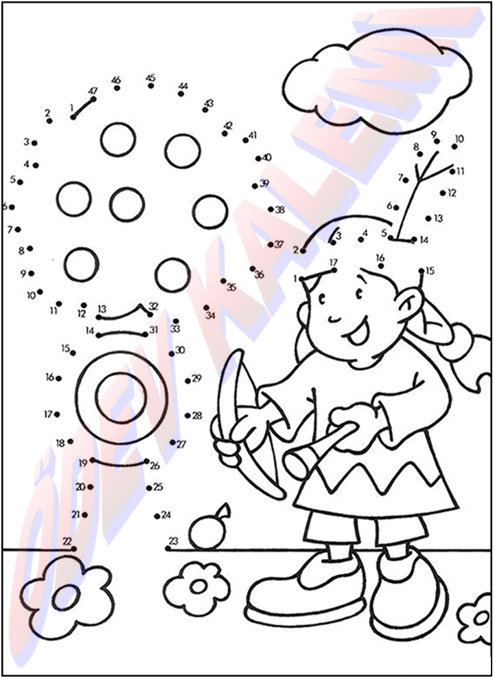 1’den başlayarak sayıları birleştiriniz. Ortaya çıkan resmi boyayınız.