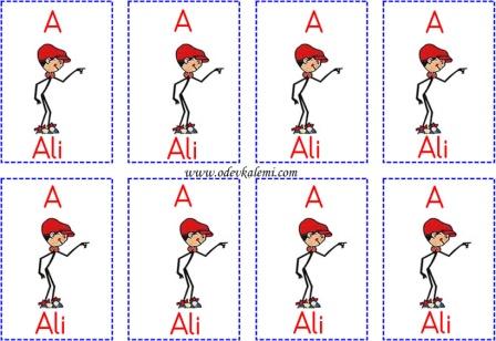 Ses Harf Kartları 1. sınıf okuma yazma etkinlikleri Türkçe A Ali kartı A sesi kartı oyun eğlenceli Gruplar