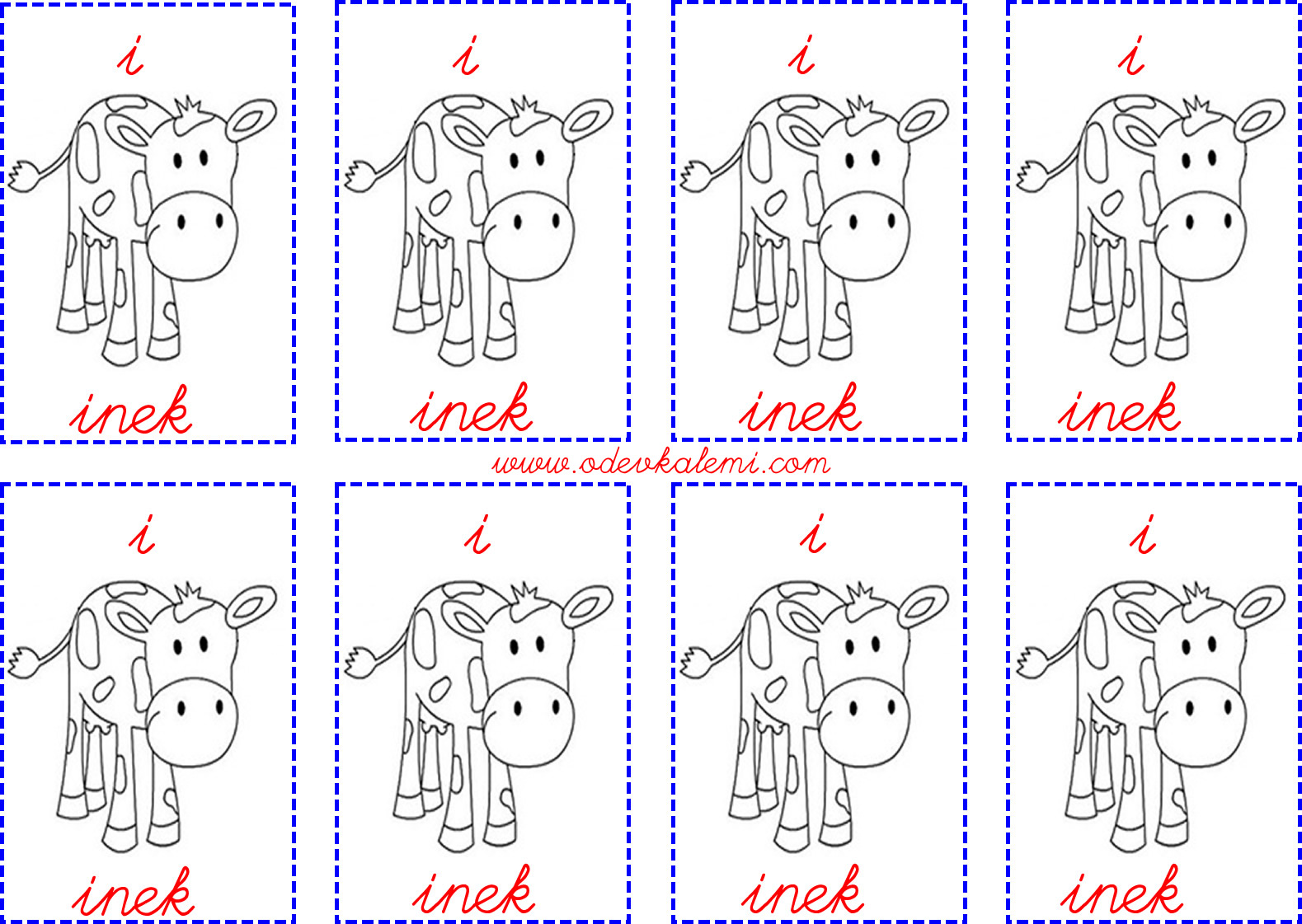 Ses Harf Kartları 1. sınıf okuma yazma etkinlikleri Türkçe i inek kartı i sesi kartı oyun eğlenceli Gruplar