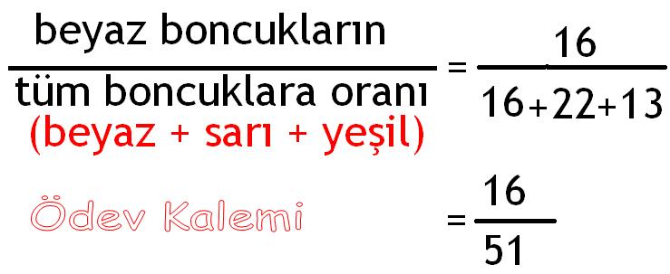 3. Bir kutuda 13 yeşil, 16 beyaz ve 22 sarı boncuk vardır. Kutudaki beyaz boncukların sayısının tüm boncukların sayısına oranı nedir?