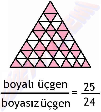 7. Aşağıdaki şekil eş parçalara bölünmüştür. Şekildeki boyalı kısmın beyaz kısımlara oranı nedir?