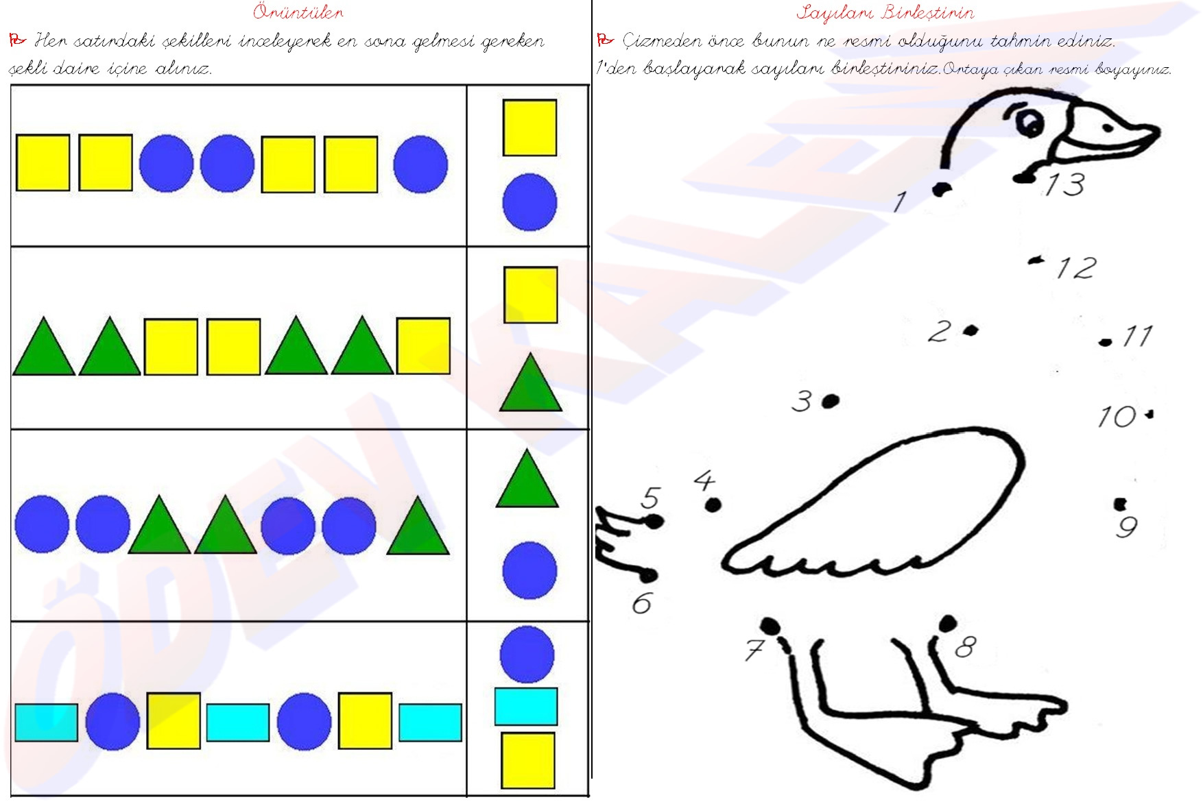 örüntüler – sayıları birleştir boya 1. sınıf matematik dersi etkinlikleri sayfası kağıdı yaprağı ders ödev fotokopi indir yaz çiz çöz
