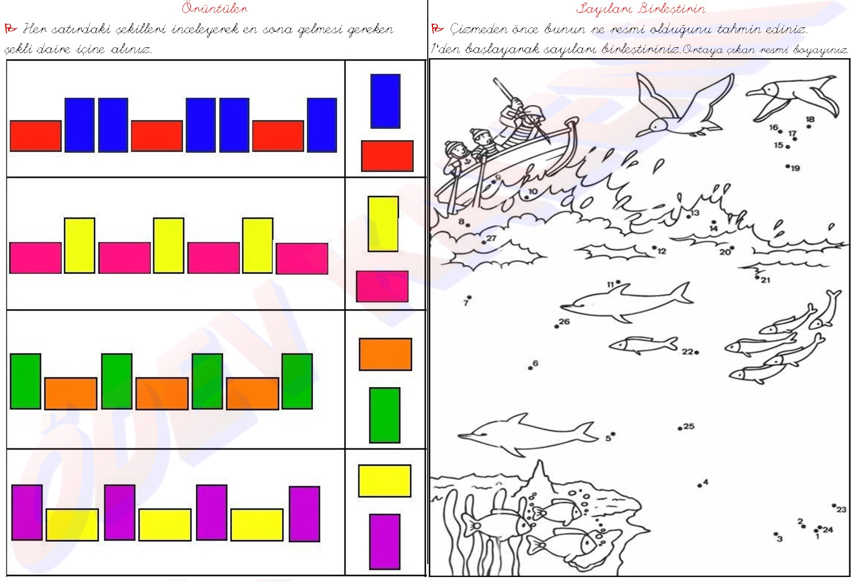 Örüntüler 1. Sınıf Matematik Dersi Sayıları Birleştir etkinliği sayfası kağıdı yaprağı ders ödev fotokopi indir yaz boya bul