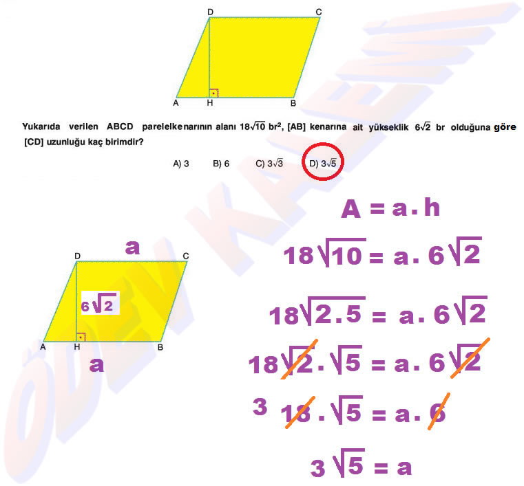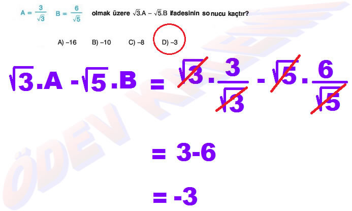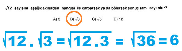 8. Sınıf Matematik Dersi Kareköklü Sayılarda (işlemlerde) Çözümlü Bölme ve Çarpma Problemleri Örnek