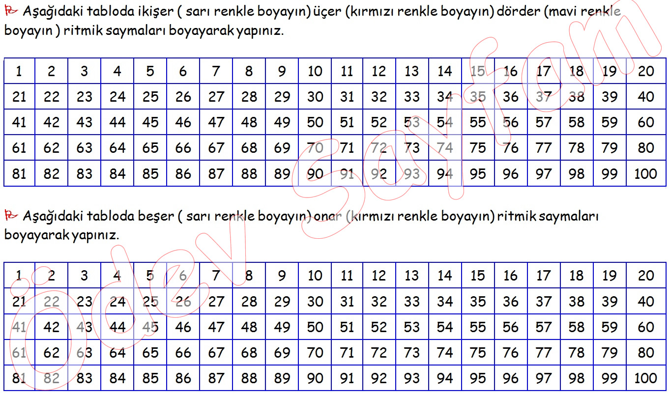 2. sınıf Matematik Dersi Ritmik saymaları boyama etkinliği