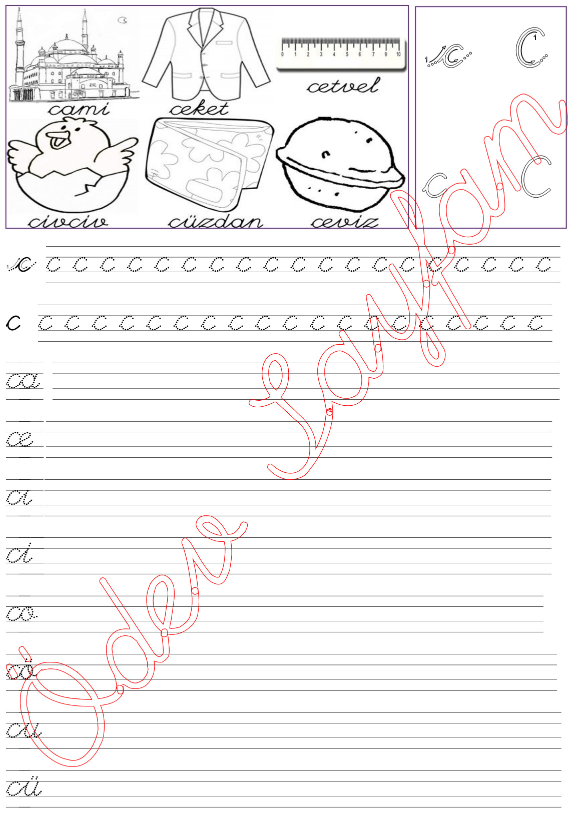 c sesi sezdirme 5. grup harfler 1. sınıf Türkçe Dersi Okuma Yazma Etkinlikleri