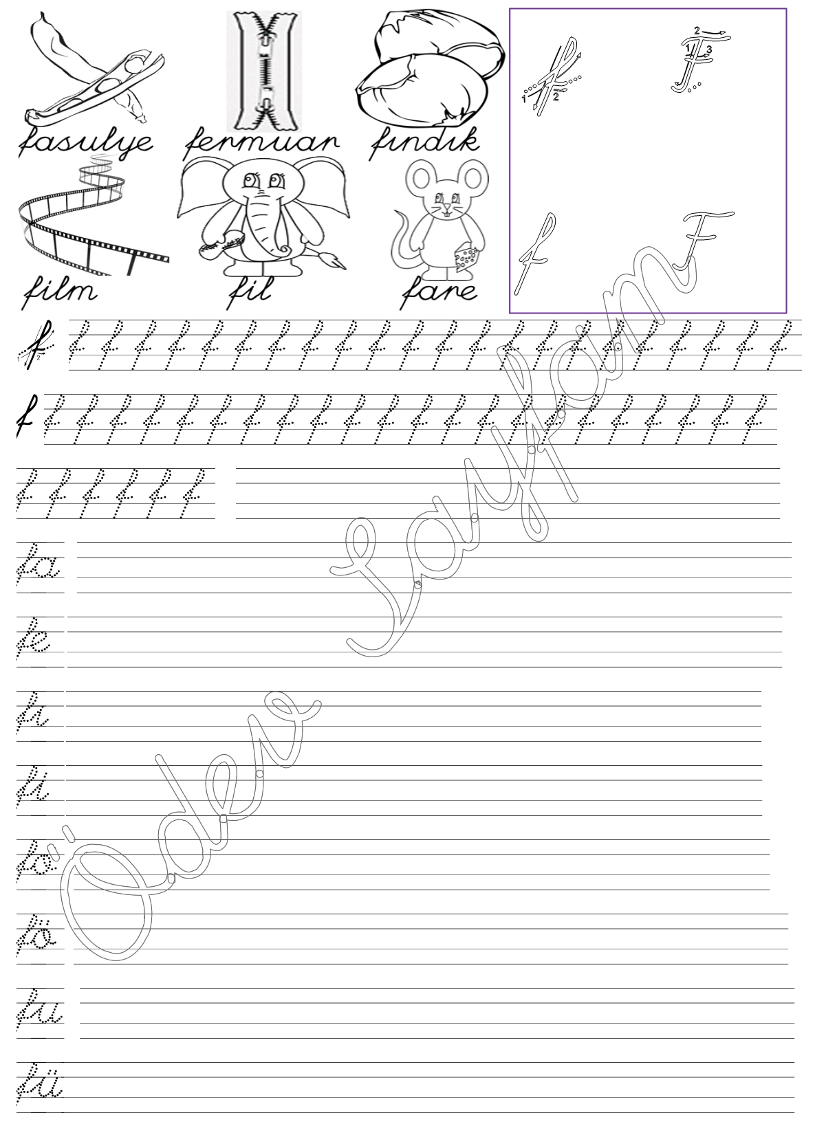f sesi sezdirme 6. grup harfler 1. sınıf Türkçe Dersi Okuma Yazma Etkinlikleri