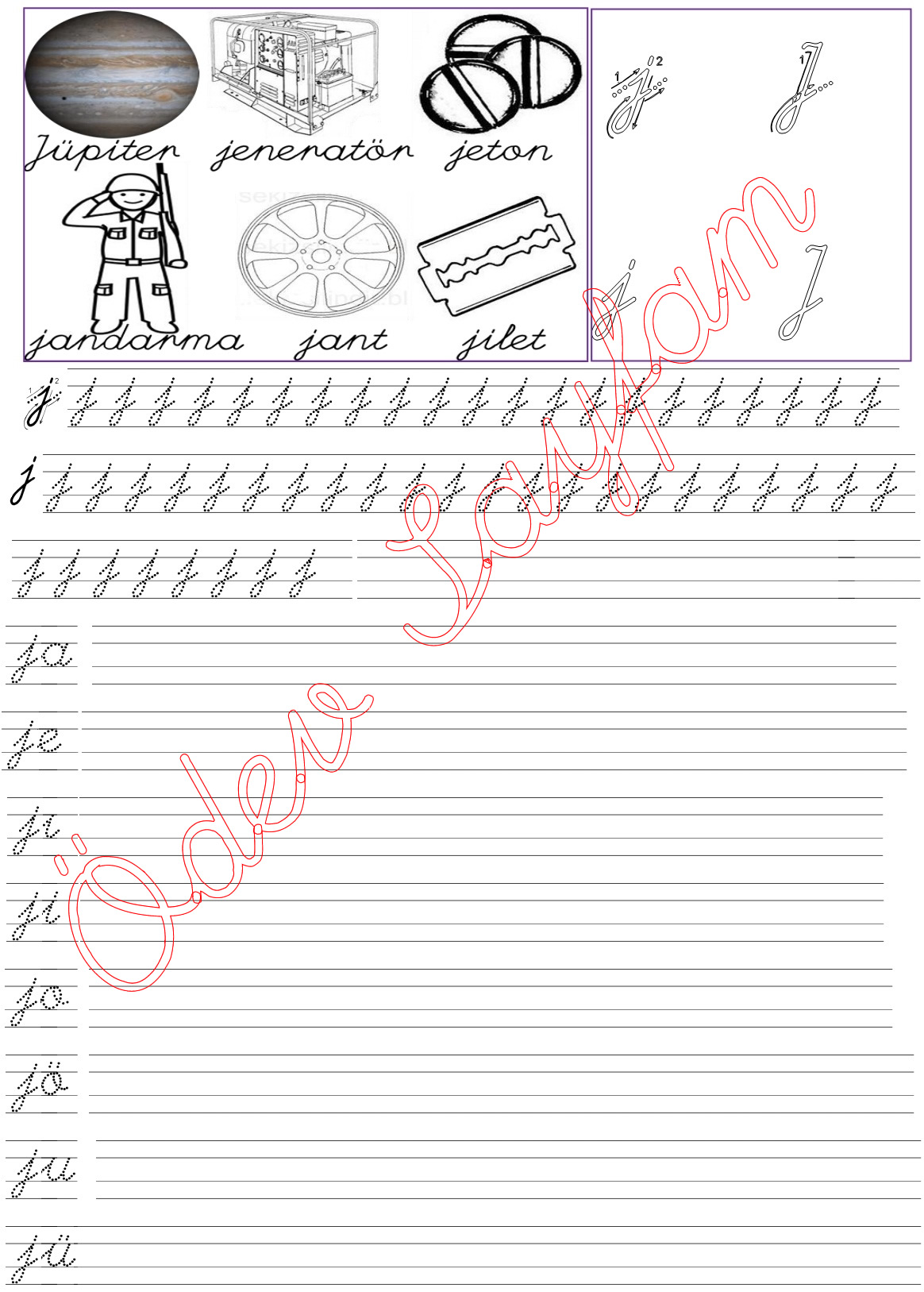 j sesi sezdirme 6. grup harfler 1. sınıf Türkçe Dersi Okuma Yazma Etkinlikleri