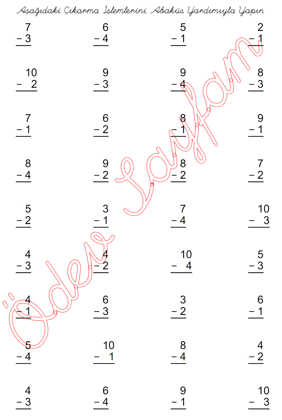 1. sınıf matematik dersi eksileni en çok 10 olan doğal sayılarla çıkarma işlemleri