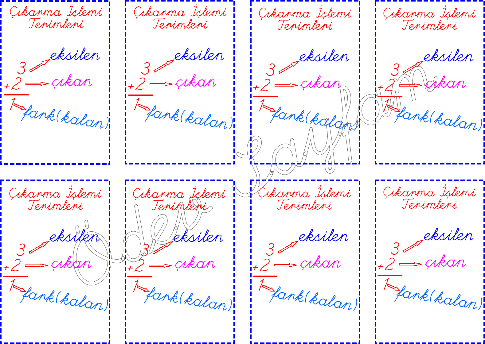 çıkarma işlemi terimleri kart 1. sınıf matematik dersi toplanan toplanan toplam, 1. Sınıf Matematik Dersi Etkinlikleri