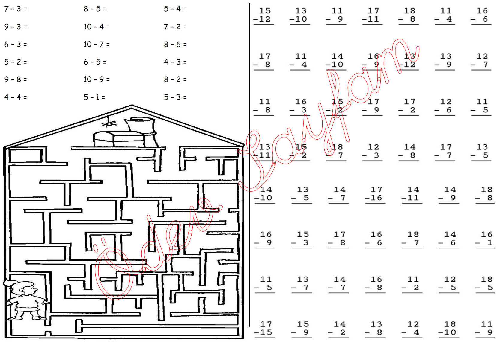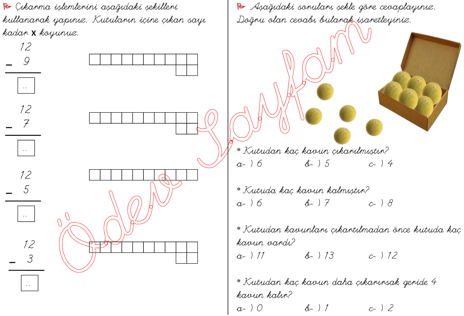 1. sınıf matematik dersi çıkarma işlemi alıştırmaları resimli