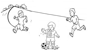 Parka giderken arkadaşlarına uğrayıp onları da oyun oynamaya çağırdı. Oyun oynamaya Bora, Davut, Engin, Faruk ve Zafer geldiler. Birlikte futbol oynamaya başladılar. Fakat her kural Hamdi tarafından konuluyordu. Kabul edilmezse hemen topumu alıp giderim diye arkadaşlarını tehdit ediyordu. Arkadaşları da başka topları olmadığı için kabul ediyorlardı.
