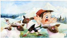 Derken, günün birinde kurt gerçekten çıkageldi. Küçük Çoban, yine:
