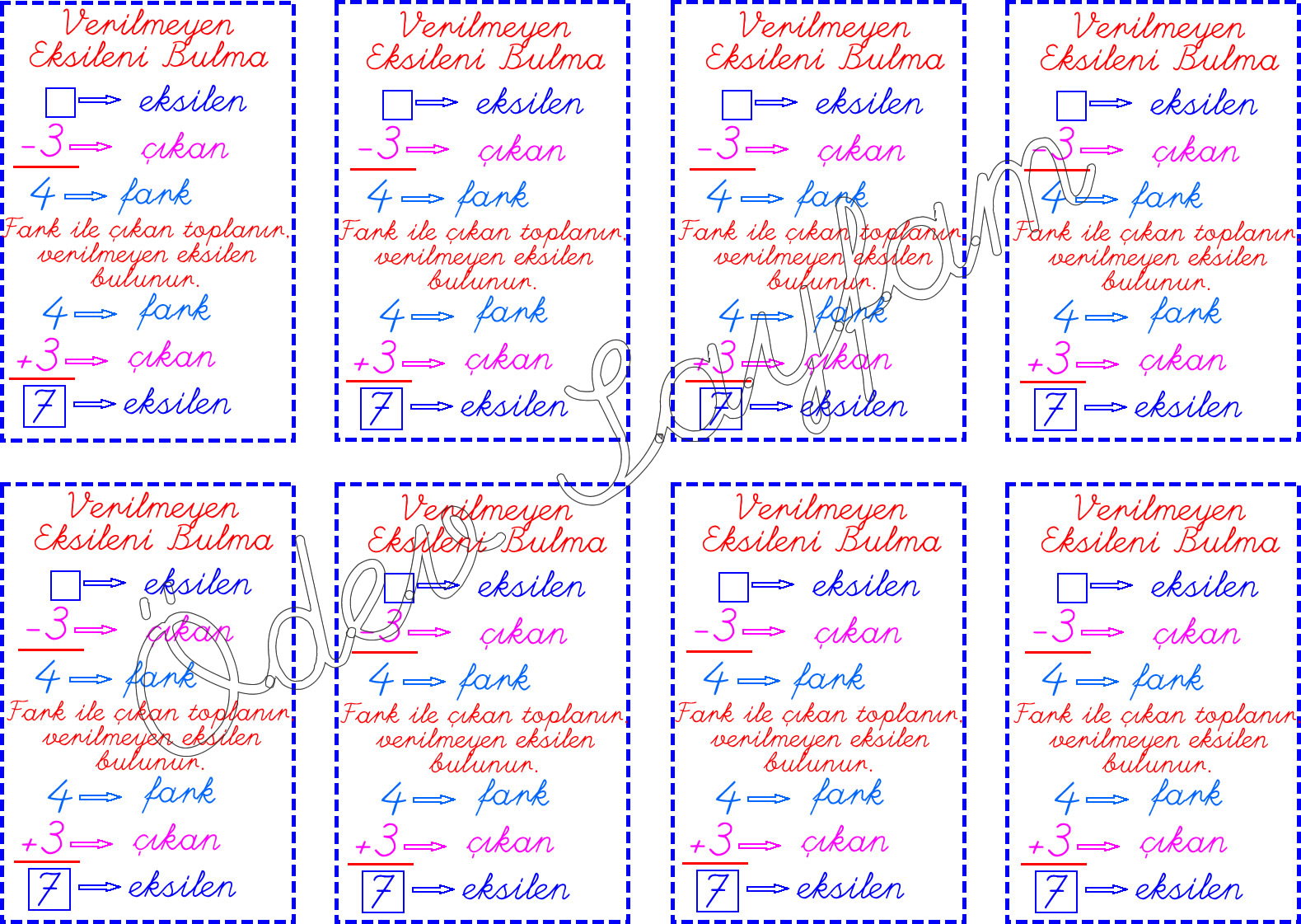 verilmeyen eksileni bulma kart 1. sınıf matematik dersi
