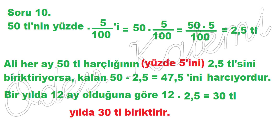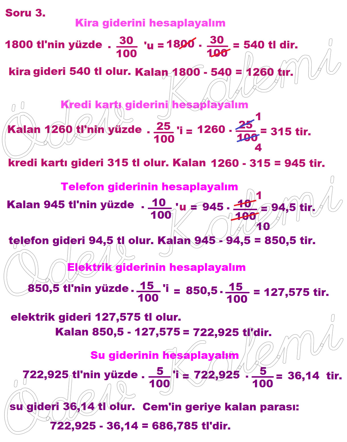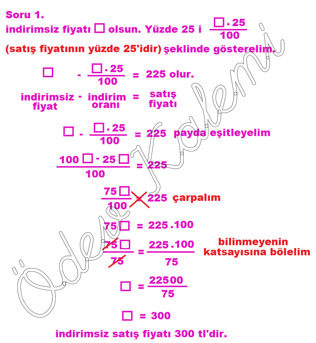 5. Sınıf Matematik Dersi Çözümlü Yüzde Problemleri