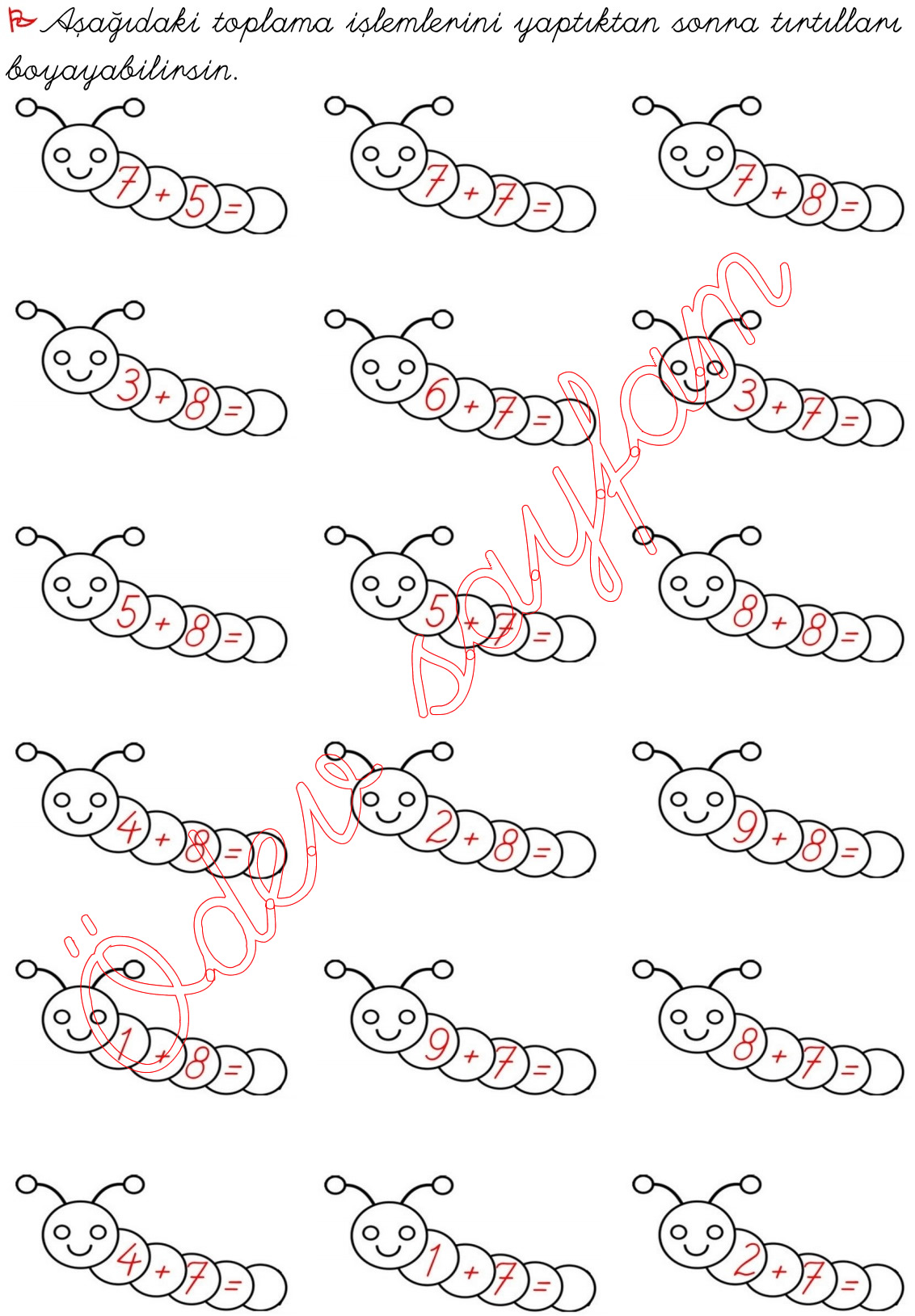 birden ona kadar olan sayılarla Toplama işlemleri 1. Sınıf Matematik Dersi resimli (topla ve boya)