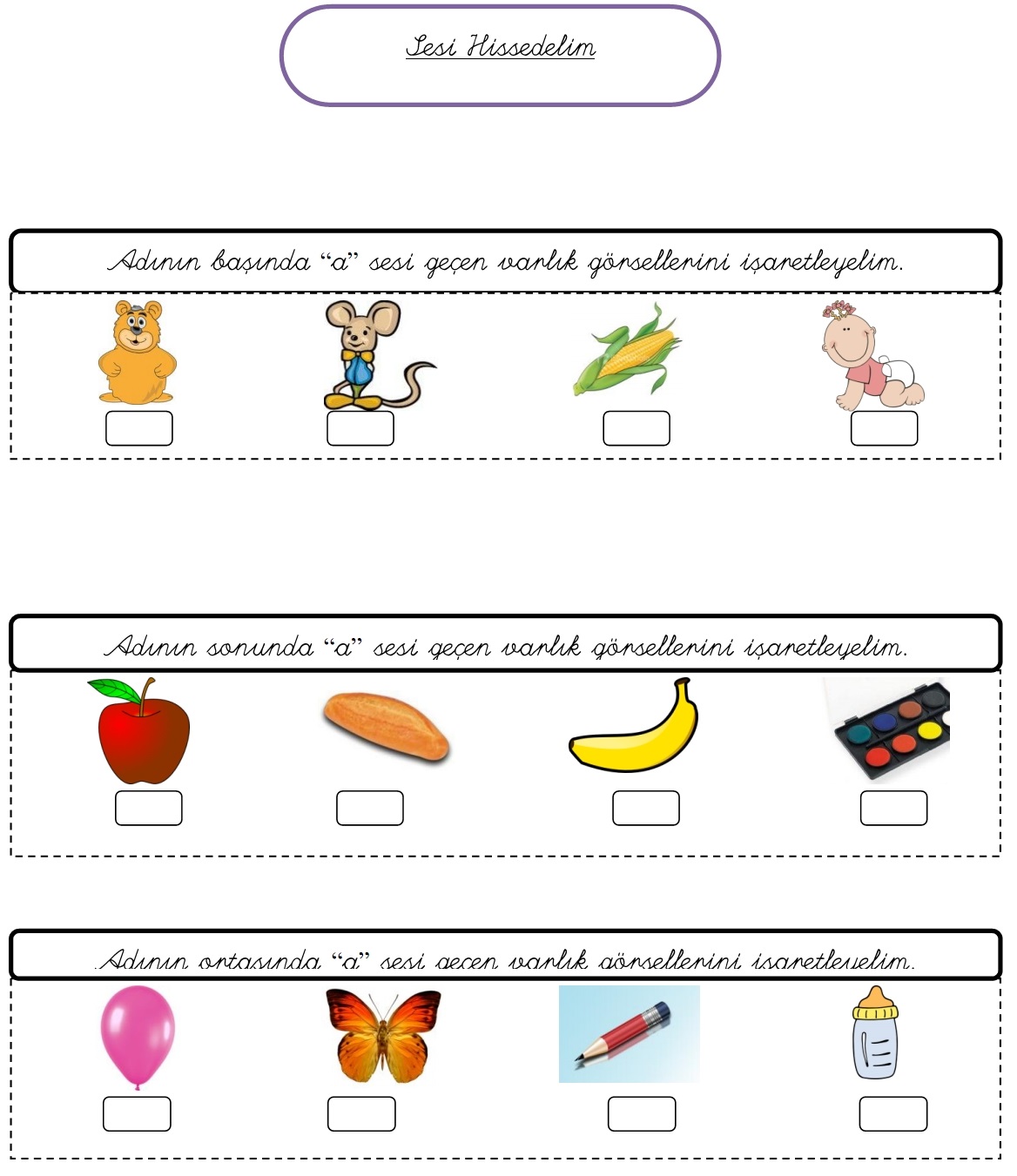 a sesi hissettirme 1. grup harfler 1. sınıf Türkçe Dersi okuma Yazma Etkinlikleri
