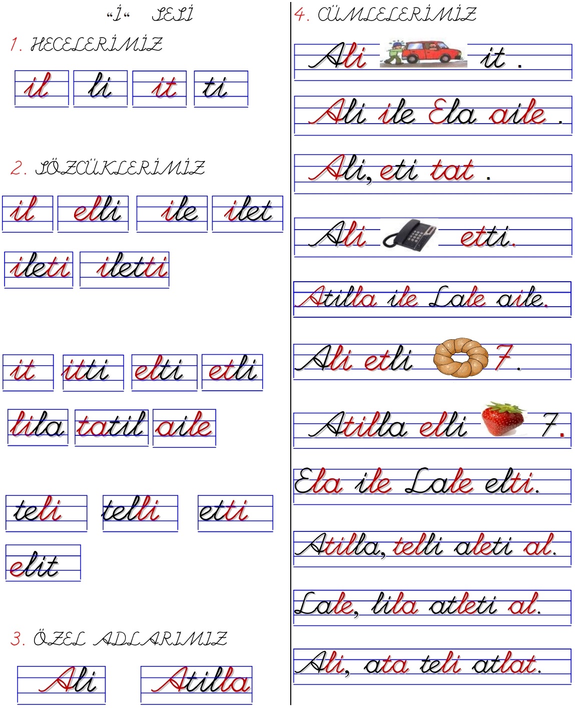 i sesi tekrar çalışması 2. grup harfler okuma yazma etkinlikleri 1. sınıf Türkçe Dersi
