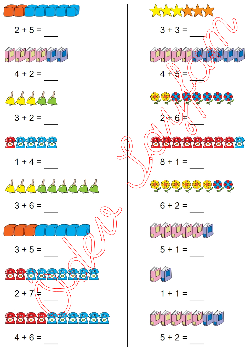 İlköğretim 1. Sınıf Matematik Dersi toplama işlemi yapmayı öğreniyorum toplamları 10’u (onu) geçmeyen bir basamaklı doğal sayılarla bir basamaklı doğal sayıların yan yana toplam alıştırmaları. Etkinlik resimli – şekilli ve renkli olarak hazırlamış olup öğrencilerin dünyasına hitap eden onların ilgisini çekebilecek niteliktedir.